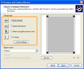 Scanning from the [Scanner and Camera Wizard] dialog box (Windows XP only)