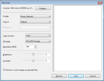 The scanner currently being used is displayed. Click [Change] to select a different scanner.