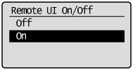 ] to highlight <Remote UI On/Off>, and then press [OK].