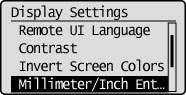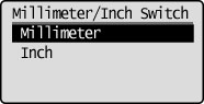 ] to highlight <Millimeter/Inch Entry Switch>, and then press [OK].