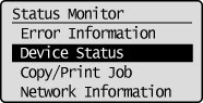 ] (Status Monitor) to display the Status Monitor screen. From here, you can check, change, etc. the status of error information, the device status, copy/print jobs, and network information.