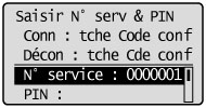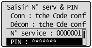 Si le numéro de service ou le mot de passe saisi est erroné, le message <Nombre incorrect. Le ressaisir.> s'affiche. Dans ce cas, recommencez la procédure depuis l'étape 1.