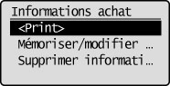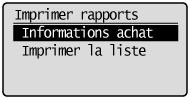 ] pour sélectionner <Informations achat>, puis appuyer sur [OK].