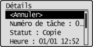Pour vérifier les détails de la tâche à annuler, appuyer sur [