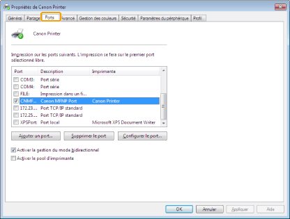 Si le pilote d'imprimante installé utilise un port différent que celui affecté à la machine, vous devez le configurer afin qu'il corresponde à l'adresse IP de la machine.