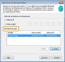 Lorsque l'adresse IP de la machine est modifiée, vous devez reconfigurer le port afin qu'il corresponde à l'adresse IP de la machine.