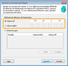 Saisissez manuellement l'adresse IP ou MAC de la machine.