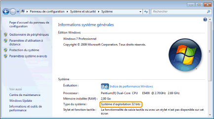 La mention [Système d'exploitation 32 bits] est affichée.