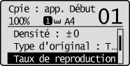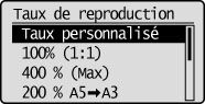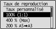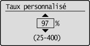] ou [ ] pour spécifier le taux, puis appuyer sur [OK].Vous pouvez également saisir le taux de reproduction avec [