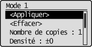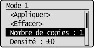 Si le mode de copie n'est pas mémorisé, la valeur par défaut s'affiche.