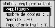 ] pour sélectionner <Modifier les réglages par défaut>, puis appuyer sur [OK].
