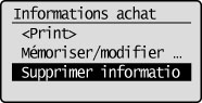 ] pour sélectionner <Supprimer informations achat>, puis appuyer sur [OK].