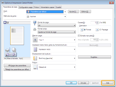 L'affichage peut varier en fonction du système d'exploitation, ainsi que du type et de la version du pilote d'impression.