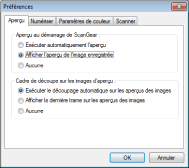Permet de choisir l'opération de prévisualisation à réaliser à l'ouverture de ScanGear MF.