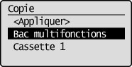Si la source d'alimentation sélectionnée vient à manquer de papier pendant une copie ou une impression, cette fonction permet à la machine de sélectionner automatiquement une autre source contenant du papier de même format, puis la copie ou l'impression se poursuit.