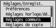 ] pour sélectionner <Réglages communs>, puis appuyer sur [OK].