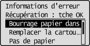 ] pour sélectionner <Informations d'erreur>, puis appuyer sur [OK].
