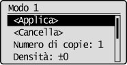 Se non sono registrate modalità di copia, vengono visualizzati i valori predefiniti.