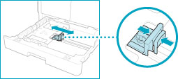 Far scorrere le guide fino a bloccarle in posizione con uno scatto. Inoltre, è necessario regolare correttamente le guide per evitare di causare inceppamenti e sporcare le stampe o le parti interne della macchina.