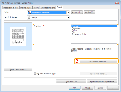 Per le istruzioni su come visualizzare la schermata del driver della stampante, vedere "Stampa" o "Configurazione delle impostazioni predefinite di stampa".