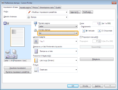 Selezionare il formato di stampa del documento in [Formato stampa].