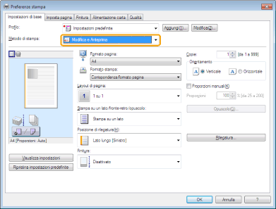 Per le istruzioni su come visualizzare la schermata del driver della stampante, vedere "Stampa" o "Configurazione delle impostazioni predefinite di stampa".