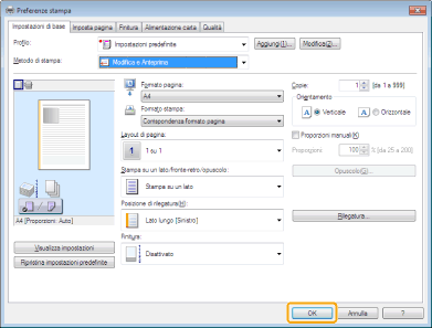 La visualizzazione può essere diversa a seconda del sistema operativo, nonché del tipo e della versione del driver per stampante.