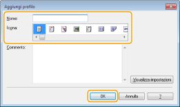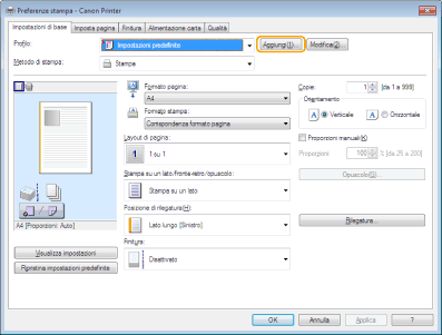 Per modificare o eliminare un profilo, nella schermata del driver della stampante fare clic su [Modifica] a destra di [Profilo]. Non è possibile modificare i profili preimpostati.