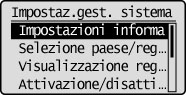 ] per selezionare <Impostazioni informaz. gestore sistema>, quindi premere [OK].