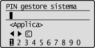 ] o [ ] per immettere il PIN gestore sistema, quindi premere [OK].Premendo <Applica> compare la schermata di conferma. Inserire nuovamente il PIN e premere <Applica>.