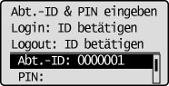Um das System erneut bedienen zu können, müssen Sie Ihre Abteilungs-ID und Ihr Passwort eingeben.
