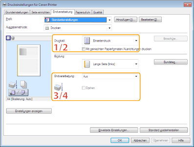 Auf der Registerkarte [Endverarbeitung] stehen Ihnen folgende Optionen zur Verfügung.