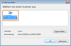 Folgen Sie den unten aufgeführten Vorgehensweisen, wenn der WIA-Treiber angezeigt wird. Nähere Informationen zur Anzeige des WIA-Treibers finden Sie unter Folgendem.