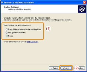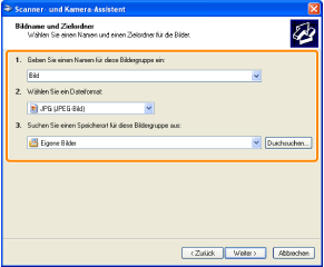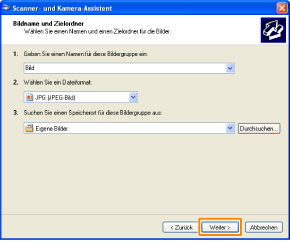 Nähere Informationen finden Sie unter "Scannen aus dem Dialogfeld [Scanner und Kamera-Assistent] (nur Windows XP)" in den Schritten 6 bis 14.