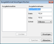 Fügt das festgelegte Ausgabeformat unter [Ausgabeformatliste] hinzu.
