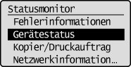 ] (Statusmonitor), um den Statusmonitorbildschirm anzuzeigen. Dort können Sie den Status von Fehlermeldungen, den Systemstatus, den Status von Kopier-/Druckaufträgen sowie Netzwerkinformationen abrufen, ändern usw.