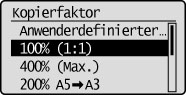 ], um <Kopierfaktor> hervorzuheben, und drücken Sie dann [OK].