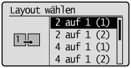 Wählen Sie <Layout wählen> aus, um das Layout der Kopie zu ändern.