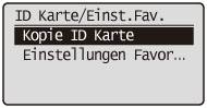 ], um <Kopie ID Karte> hervorzuheben, und drücken Sie dann [OK].