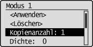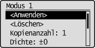 Wenn noch keine Kopiereinstellungen gespeichert wurden, wird der Standardwert angezeigt.