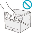 Schalten Sie den Hauptschalter nicht AUS und öffnen Sie nicht die vordere Abdeckung, während das System in Betrieb ist. Anderenfalls kann es zu Papierstau kommen.