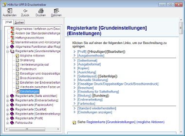 Die Online-Hilfe enthält zusätzliche Informationen zu den einzelnen Druckoptionen. Wenn Sie die gewünschten Informationen in der e-Anleitung nicht finden, sehen Sie in der Online-Hilfe nach.