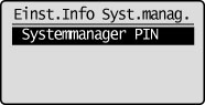 ] oder [ ], um die Systemmanager-PIN einzugeben, und drücken Sie dann [OK].Betätigen Sie die Taste <Anwenden>. Der Bestätigungsbildschirm wird angezeigt. Geben Sie die PIN erneut ein, und betätigen Sie die Taste <Anwenden>.