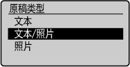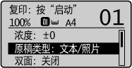 如果 <浓度> 设置为 <自动浓度>,选择 <文本/照片> 或 <照片> 时,<浓度> 会更改为 ±0。