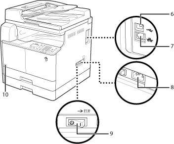 包括操作本机所需的按键、显示屏幕和指示灯。(See "操作面板部件及其功能.")