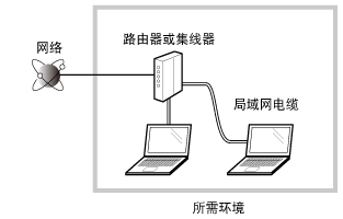 连接到有线局域网时的注意事项:根据环境,计算机或网络连接设备的结构、路由器功能的存在、设置方法和安全设置会有所不同。