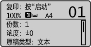 如果显示提示内存不足的信息,请在复印模式屏幕上设置较低的浓度或缩小稿台玻璃上的名片或其他原稿。
