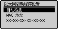 ] 选择 <以太网驱动程序设置>,然后按 [OK]。