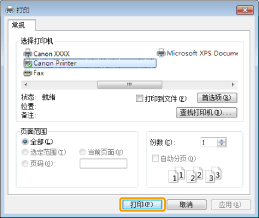 设备]-> 所使用的打印机 ->[打印]。用这种方法进行打印时,仅可设置部分打印功能。 |