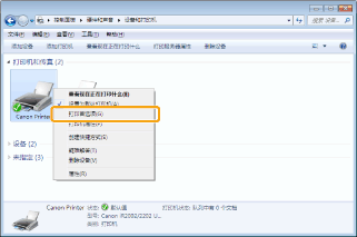 设置]->[控制面板]->[设备和打印机]。对于 Windows Vista,单击 [